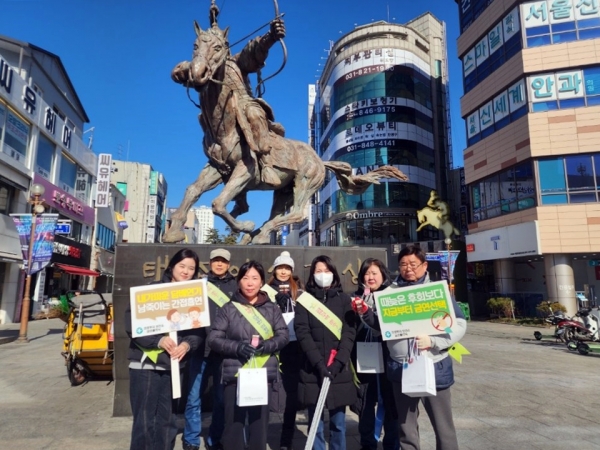 [금요저널] 의정부시 보건소는 2월 13일 행복로 거리와 주요 골목에서 금연 및 건강검진 운동을 실시했다.