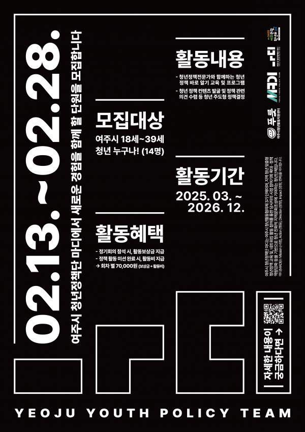 [금요저널] 여주시청년활동지원센터에서 지역 청년들의 정책역량강화 및 당사자 시정참여 확대를 위한 ‘여주시청년활동협의체 3기 ‘청년정책단’’단원을 모집한다.