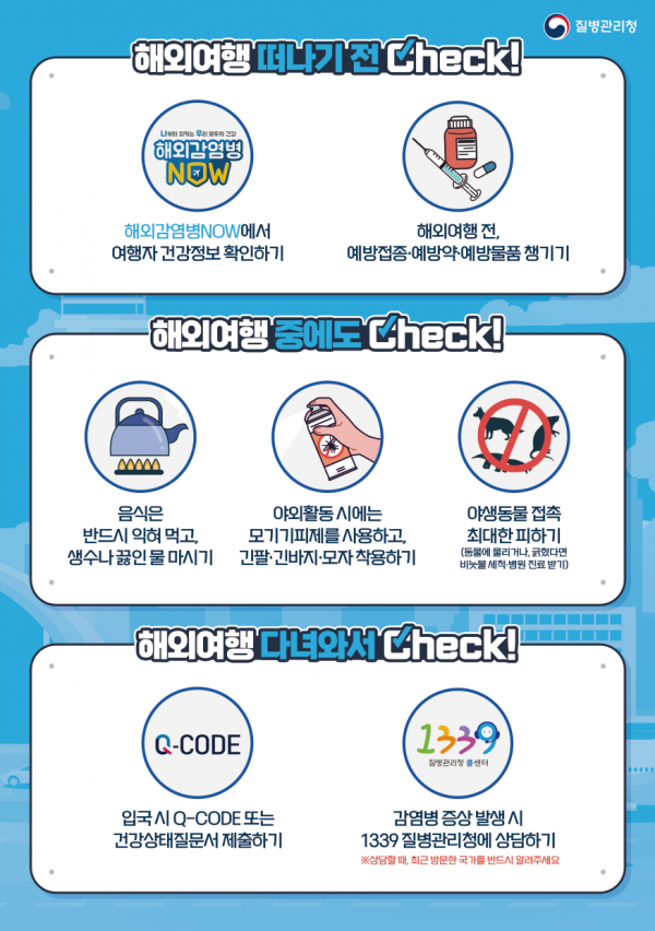 해외여행 후 귀국 시 ‘큐코드’ 또는 건강상태질문서를 제출해야 하며 유증상자는 검역소에서 상담 및 신속진단키트검사를 받을 수 있다.