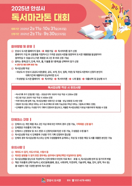 [금요저널] 안성시는 2025년 독서마라톤 대회를 2월 11일부터 10월 31까지 9개월간 진행한다.