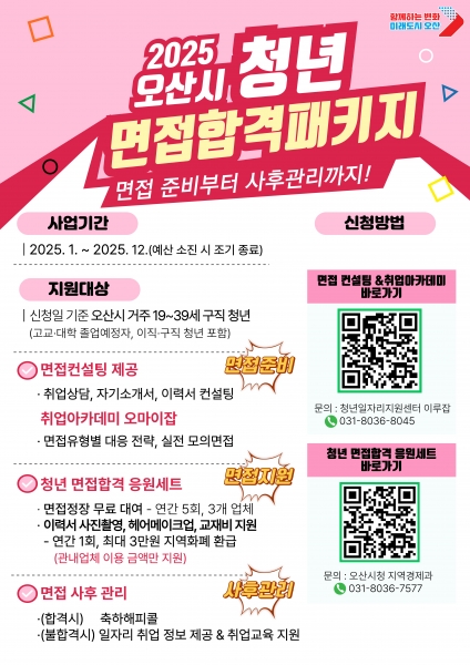 [금요저널] 오산시가 청년들의 취업 부담을 줄이고 실질적인 지원을 확대하기 위해 ‘청년 면접 합격 패키지 사업’을 본격 추진한다.