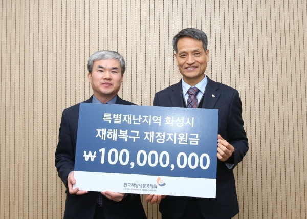 [금요저널] 화성특례시는 20일 행정안전부 산하 지방재정전문기관인 한국지방재정공제회로부터 특별재난지역 재해복구 재정지원금 1억원을 전달받았다.