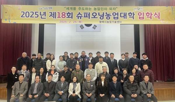 [금요저널] 평택시는 지난 25일 농업기술센터 대강당에서 제18회 슈퍼오닝농업대학 입학식을 개최했다.