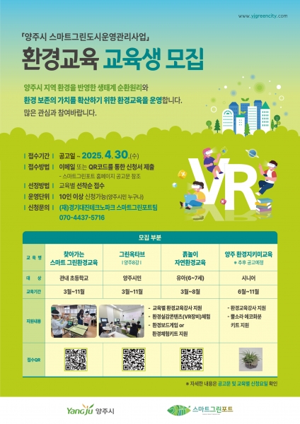 양주시, ‘스마트 그린도시운영관리사업’ 환경교육 교육생 선착순 모집