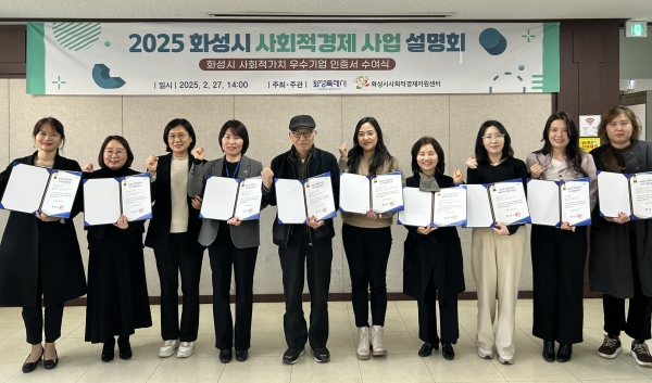 또한, 인증서 수여식에 이어 화성시와 화성시 사회적경제지원센터가 2025년 관내 사회적기업의 육성과 판로 개척을 위해 추진하는 40여 개 지원사업에 대한 설명을 진행했다.