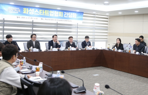 [금요저널] 화성특례시가 27일 동탄 화성산업진흥원 2층 회의실에서 화성스타트업협회 회원들과 간담회를 개최했다.