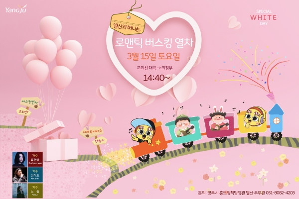[금요저널] 양주시가 오는 3월 15일 교외선 재개통을 기념하며 특별한 시티투어 ‘장흥 1DAY 투어 & 로맨틱 버스킹 열차 여행’을 선보인다고 밝혔다.
