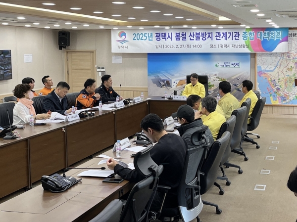 [금요저널] 평택시가 지난 27일 시청 재난상황실에서 산불 대응 태세 합동점검 및 협력 강화를 위해 ‘2025년 봄철 산불방지 관계기관 종합대책회의’를 실시했다.