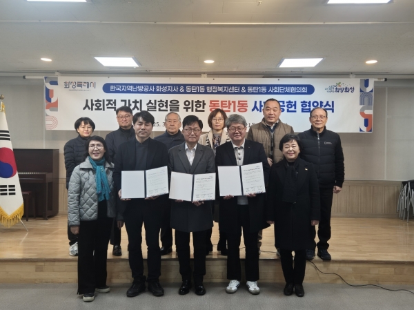 조한용 동탄1동장은 “이번 협약을 통해 한국지역난방공사 화성지사, 동탄1동 사회단체협의회와 긴밀한 협력 관계를 구축해 지역 주민의 삶의 질을 높이는 데 힘쓰겠다”고 밝혔다.