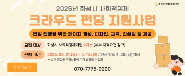 [금요저널] 화성특례시가 ‘2025년 화성시 사회적경제 크라우드펀딩 지원사업’ 으로 관내 사회적경제기업의 온라인 판로 확대에 나선다.