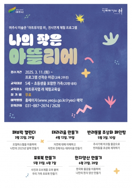 [금요저널] 여주시 미술관 ‘아트뮤지엄 려’는 2025년 3월 22일부터 6월 28일 사이, 매주 토요일에 전시연계 체험교육 ‘나의 작은 아뜰리에’를 운영한다.