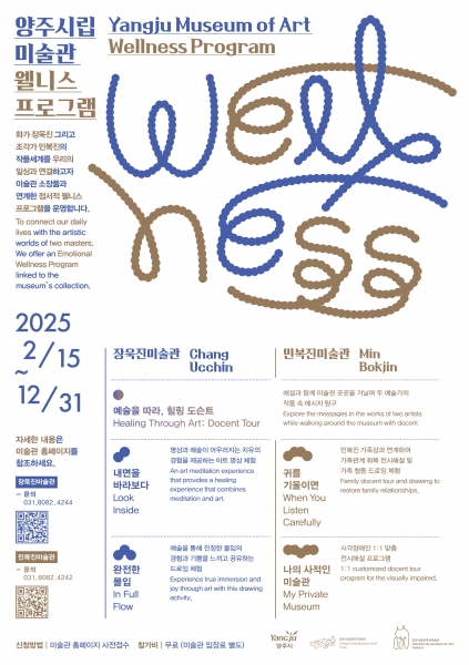 이번 웰니스 프로그램을 통해 양주시립미술관은 한국 근현대 미술을 대표하는 두 예술가의 작품세계와 우리의 일상을 연결하는 소장품 활용을 통해 관람객에게 ‘정서적 치유’라는 새로운 관람 경험을 제공할 것으로 기대된다.