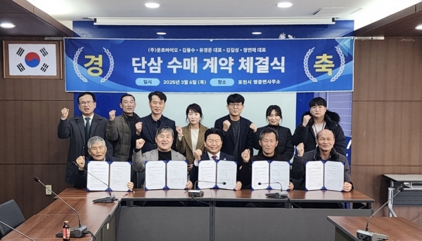 [금요저널] 포천시는 영중면 행정복지센터 소회의실에서 ㈜운트바이오와 영중면 4개 농가가 참여한 가운데 약용작물 단삼의 수매 계약을 체결했다고 10일 밝혔다.