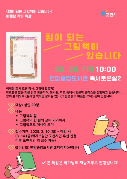 [금요저널] 포천시는 오는 28일 면암중앙도서관에서 ‘이혜령 작가 특강’을 개최한다.