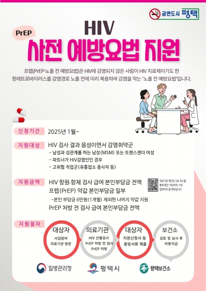 [금요저널] 평택시는 에이즈 바이러스 노출 위험이 있는 감염 취약군 대상으로 프렙 지원사업을 한다고 밝혔다.