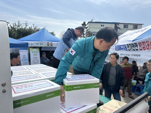 [금요저널] 포천시 화현면은 지난 13일 화현면 이장협의회, ㈜로뎀푸드, 화현면 적십자봉사회와 함께 공군 전투기 오폭 사고 피해 주민을 위한 구호 물품을 전달했다.