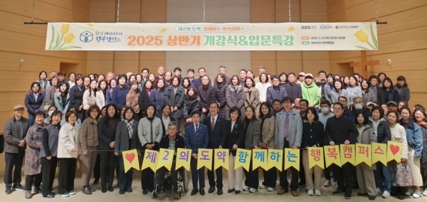 행사는 서명수 총장의 기념사와 정명근 화성특례시장의 영상 축사, 김종복 문화복지위원장의 축사, 사업 보고와 기념 촬영 순으로 진행됐으며 개강식 이후에는 ‘소통의 기술’을 주제로 한 특강이 이어졌다.