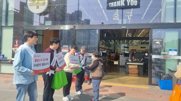 [금요저널] 양주시가 지난 14일 관내 옥정동 소재 업체 ‘마트킹’에서 ‘봄철 고농도 미세먼지 총력 대응 및 에너지 절약’을 위한 홍보 캠페인을 진행했다고 밝혔다.
