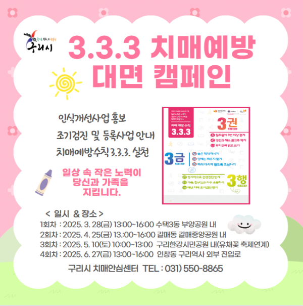 [금요저널] 구리시는 오는 3월 28일부터 6월 27일까지 총 4회 ‘3.3.3. 치매예방’ 대면 캠페인을 운영한다.