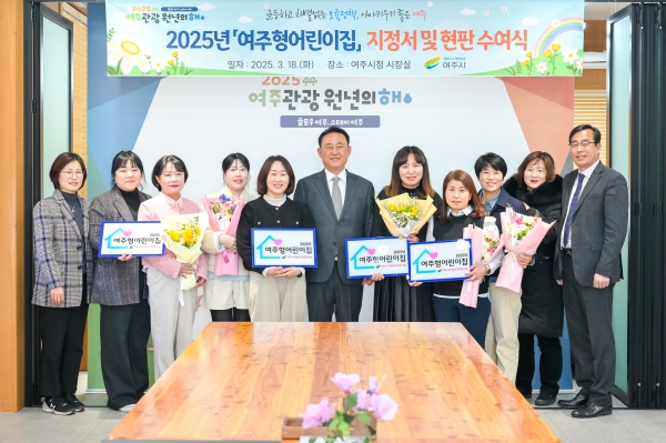 [금요저널] 여주시는 관내 민간·가정어린이집 중에서 운영이 우수한 4곳을 선정해, 18일 여주시청 시장실에서 2025년 여주형어린이집 지정서 및 현판 수여식을 가졌다.