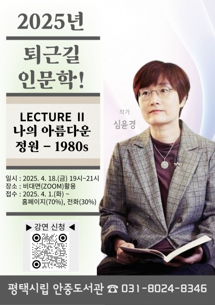 제2강 ‘나의 아름다운 정원-1980s’는 심윤경 작가의 강연으로 4월 18일 금요일에 운영된다.