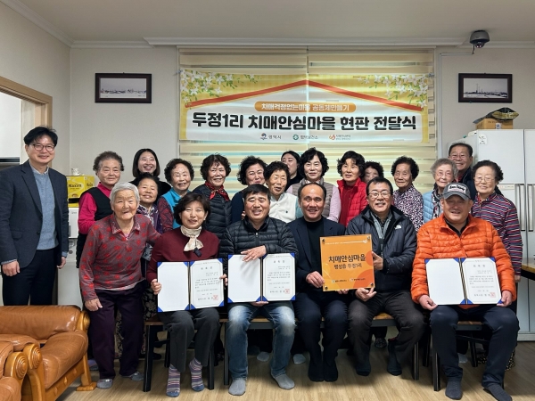또한, 치매안심센터 관계자는 “이번 치매안심마을 지정이 두정1리 어르신들이 치매로부터 안전하고 행복한 삶을 살아가는 데 도움이 될 수 있길 기대한다”며 “앞으로도 치매안심센터와 먼 거리에 있는 지역 어르신들이 건강한 노후를 영위할 수 있도록 치매 사각지대 해소를 위해 노력하겠다”고 말했다.