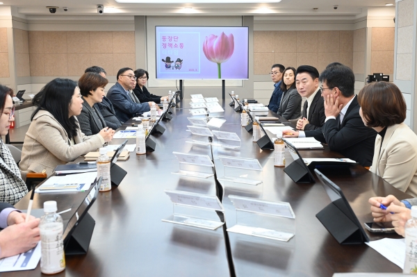 [금요저널] 의정부시는 3월 19일 시청 중회의실에서 시장, 부시장, 동장단, 관련 부서장 등 29명이 참석한 가운데 ‘3월 동장단 정책소통 티타임’을 개최했다.