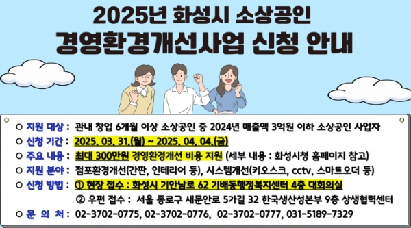 [금요저널] 화성특례시가 소상공인의 경영 안정과 경쟁력 강화를 위해 ‘2025년 소상공인 경영환경개선 사업’을 본격 추진한다.