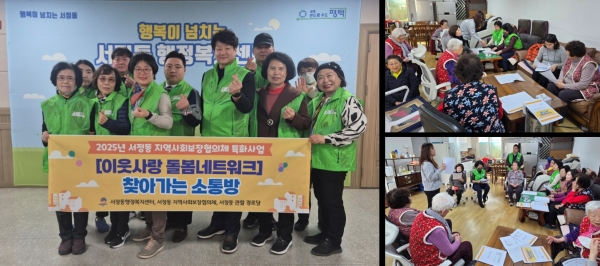 최태용 서정동장은 “복지서비스에 대해 알지 못하면 이용할 수 없기에, 먼저 다가가 정보를 전달하는 것이 도움이 필요한 이웃에게 실질적인 지원이 이루어질 수 있는 첫걸음”이라며 “앞으로도 민관이 협력해 복지 사각지대를 해소하고 실질적인 도움이 될 수 있는 다양한 서비스를 제공하겠다”고 말했다.