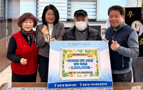 [금요저널] 광명시 광명7동 지역사회보장협의체는 지난 19일 새학기 맞아 대학교에 입학한 저소득 가정 학생들을 대상으로 ‘대학 신입생 입학축하금 지원 사업’을 추진했다.