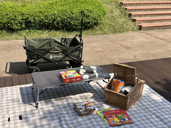 ‘북크닉’은 도서관에서 돗자리, 테이블, 도서 보드게임 등이 담긴 꾸러미를 일일 대여해 독서캠핑공원 내에 자리를 펴고 피크닉 분위기를 내면서 가족 및 친구와 함께 야외 독서를 즐기는 프로그램이다.
