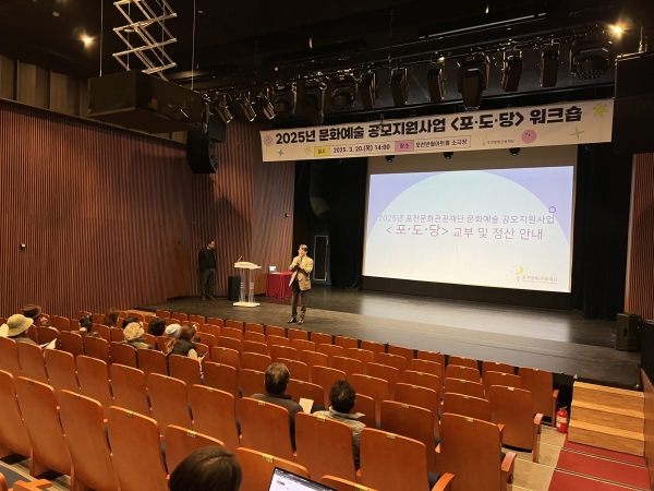[금요저널] 재단법인 포천문화관광재단은 지난 20일 포천반월아트홀 소극장에서 2025년 문화예술 공모지원사업 ‘포천에 도착한 당신의 예술’ 공동 연수를 개최했다.
