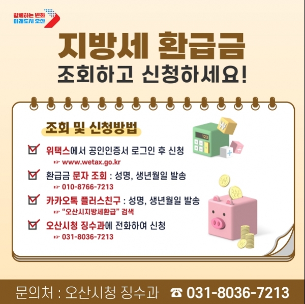 오산시, 상반기 지방세 미환급금 찾아주기 실시
