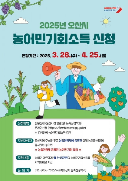 오산시, 2025년 농어민 기회소득 신청 시작