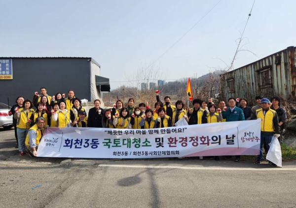 원제훈 통장협의회장은 “겨우내 쌓인 쓰레기를 치우고 나니 마을길이 한층 더 깨끗해져 보람을 느낀다”며 “앞으로도 깨끗한 회천3동을 만들기 위해 지속적으로 노력하겠다”고 말했다.