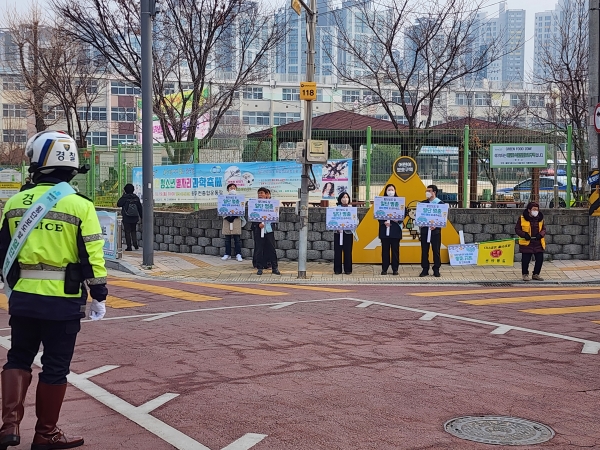 참석자들은 어깨띠와 피켓, 현수막 등을 활용해 어린이 보호구역 내 신호기가 없는 횡단보도에서 운전자가 반드시 일시 정지하도록 유도하며 배려 운전을 독려했다.
