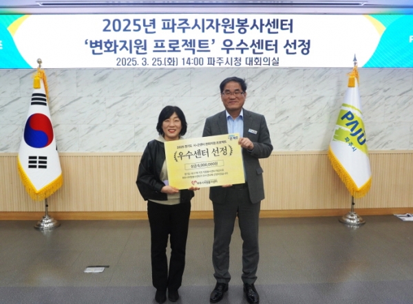 [금요저널] 파주시자원봉사센터는 지난 20일 경기도 수원시에서 개최된 ‘2025 시군센터 변화지원 프로젝트 시상식’에서 우수 시군 자원봉사센터로 선정됐다.