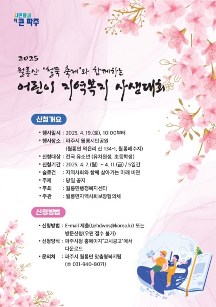 [금요저널] 파주시 월롱면은 4월 19일 월롱산에서 ‘어린이 지역복지 사생대회’를 개최한다.