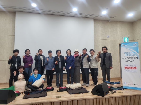 이번 교육은 환경부 지침에 따라 해설사의 전문성과 현장 대응 역량을 강화하기 위해 마련됐으며 포천소방서와 협력해 화재 및 응급 상황 대응 능력을 높이는 ‘소소심’ 교육으로 진행됐다.