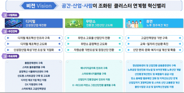 신재생에너지와 고효율설비를 확충하는 한편 산단 내 유휴부지를 활용한 정주 인프라 개선과 디지털 제조혁신 인력양성도 추진한다.