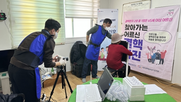 이날 결핵검진은 ‘대한결핵협회 경기도지부’에서 강하면 항금리 마을회관을 방문해, 65세 이상 어르신 25명을 대상으로 흉부 방사선 촬영 검사를 진행했으며 실시간 판독 결과 결핵 유증상자에게는 가래검사도 실시했다.