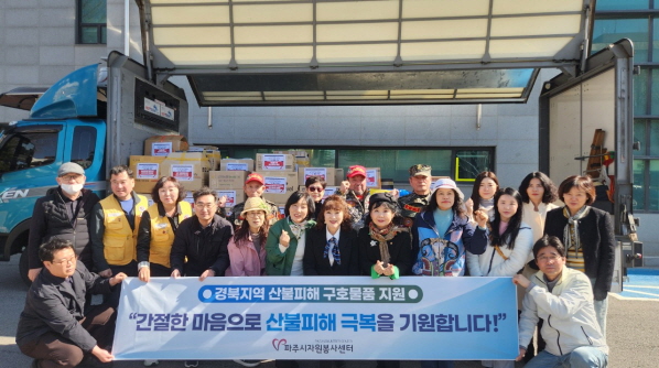 [금요저널] 파주시자원봉사센터는 지난 31일 산불피해지역인 경상북도 안동시 및 영양군에 봉사단체와 시민들이 모은 긴급 구호물품을 전달했다.