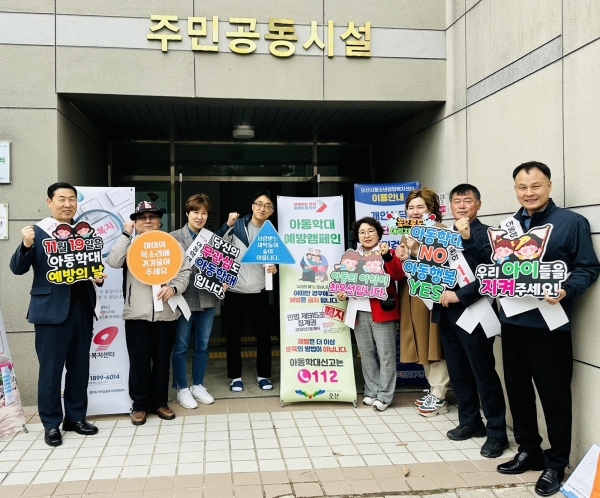 이명숙 아동복지과장은 “아동학대예방을 위해 캠페인에 참여해주신 아동위원협의회 위원님들께 감사드린다”며 “민·관협력을 통해 아동학대예방 캠페인을 적극 추진해 아동학대에 대한 인식이 개선될 수 있도록 더욱 노력하겠다”고 말했다.