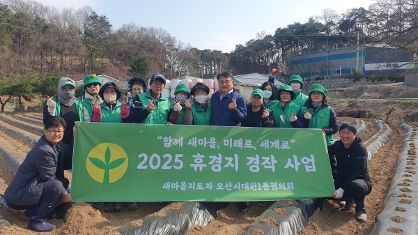 [금요저널] 오산시 대원1동 새마을지도자협의회는 지난 3월 28일 오전, 화성시 정남면에 위치한 한 밭에서 ‘이웃돕기 기금마련 감자심기 행사’를 진행했다.
