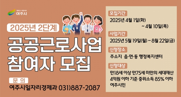 여주시, 2025년 2단계 공공근로사업 참여자 모집