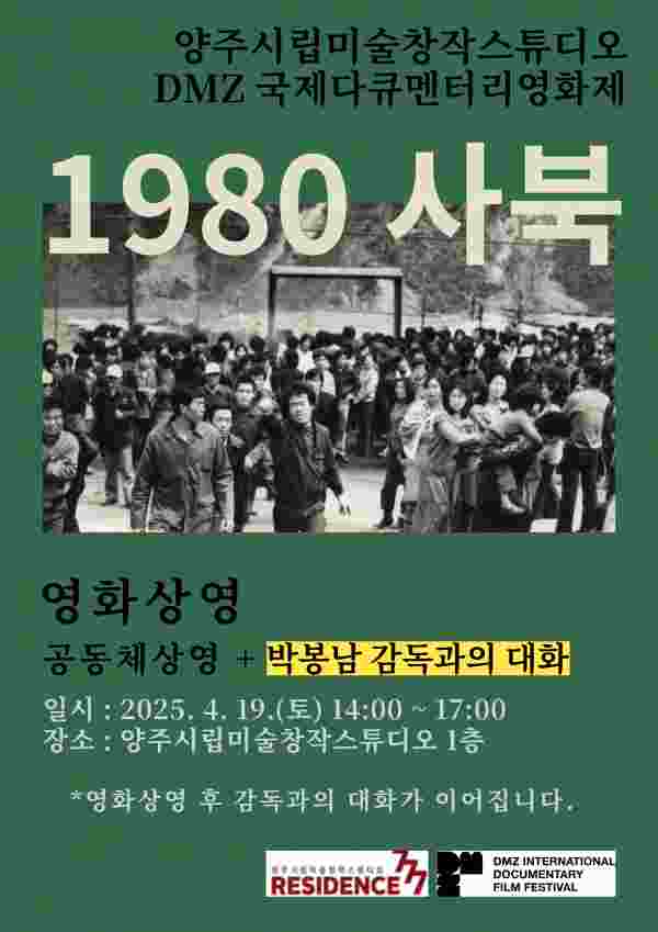 [금요저널] 양주시가 오는 4월 19일 ‘양주시립미술창작스튜디오’에서 ‘DMZ다큐멘터리영화제’ 가 주최하는 ‘DMZ 공동체상영 지원사업’에 선정되어 다큐멘터리 영화 ‘1980 사북’을 상영한다고 밝혔다.