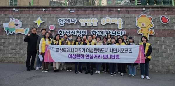 이번 모니터링에는 화성시, 화성서부경찰서 화성동탄경찰서 시민서포터즈 등이 참여해, 여성친화 안심거리 시설물의 유지·관리 상태와 실제 활용도를 점검하고 의견을 수렴하는 시간을 가졌다.