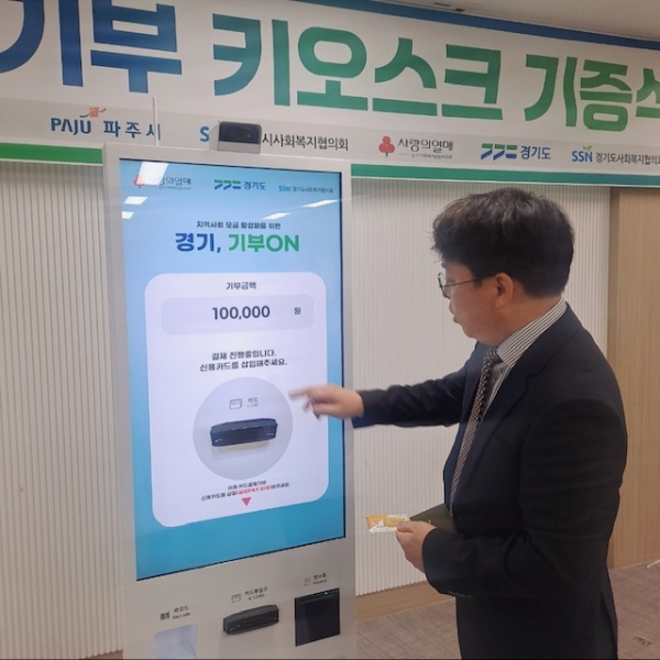 이번 기증식은 경기도가 파주시 사회복지협의회에 기부모금 무인단말기 장비를 기증하면서 마련된 것으로 이번 기증으로 지역 주민들이 보다 쉽게 기부에 참여할 수 있는 환경이 조성될 것으로 기대된다.