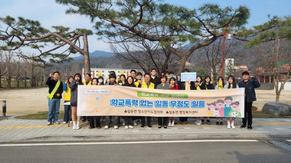 이날 캠페인은 일동면 청소년지도협의회, 일동고등학교 교직원 및 학생, 일동면 행정복지센터 직원 등 20여명이 참여한 가운데 ‘학교폭력 없는 일동, 우정도 일등’ 이라는 구호로 진행됐다.