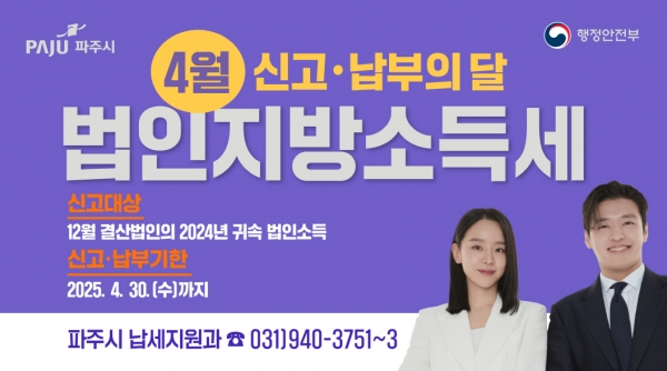 파주시 “4월은 법인지방소득세 신고·납부의 달”